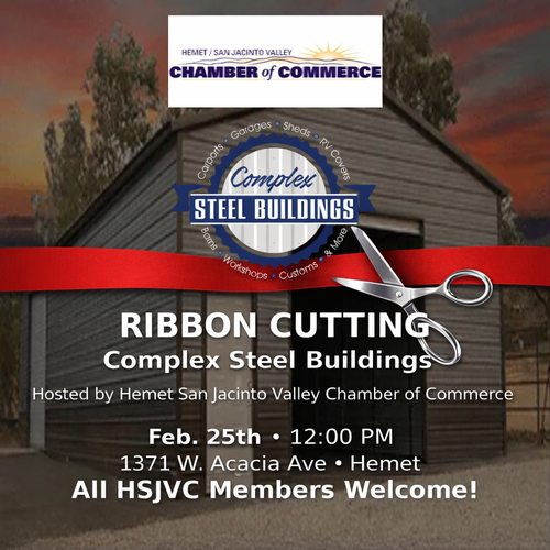 Come out and help us celebrate a ribbon cutting ceremony at Complex Steel Buildings. Let's show them some support and help them celebrate this great occasion. Always a good time to network with other business owners in the area.