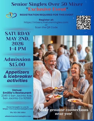 MatureMingles is hosting a Hemet Senior Singles Over 50 Mixer.